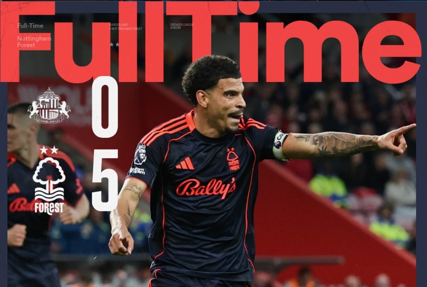 I fredagens möte tog Nottingham Forest ledningen från motståndaren redan efter 17 minuter. Sedan satte Sunderlands ytterback Trai Hume bollen i eget mål. En halvtimme in i matchen dubblade Chris Wood ledningen, innan Morgan Gibbs-White och Igor Jesus båda gjorde mål före halvtid.