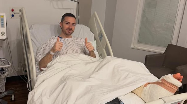 Skadan i foten behövde opereras, och på tisdag kommer Grealish att lägga upp en bild och ett meddelande till Everton-supportrarna.