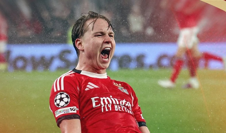 År 2026 har Jose Mourinho gett 21-åringen mycket speltid, Schelderup har svarat på förtroendet med flera avgörande mål (2 i Champions League, 3 i portugisiska ligan), på lördagen även en assist till ännu en knapp seger och han är fortfarande med i titelstriden, sju poäng bakom Porto i toppen.